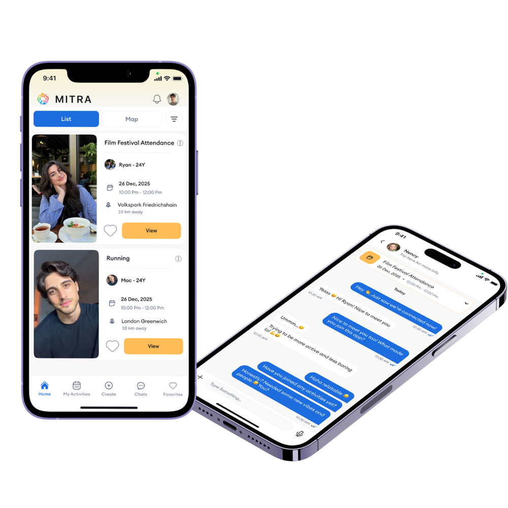 MITRA matches you 1-on-1 with real people for tennis, coffee, hiking and anything else you love — near you, today.